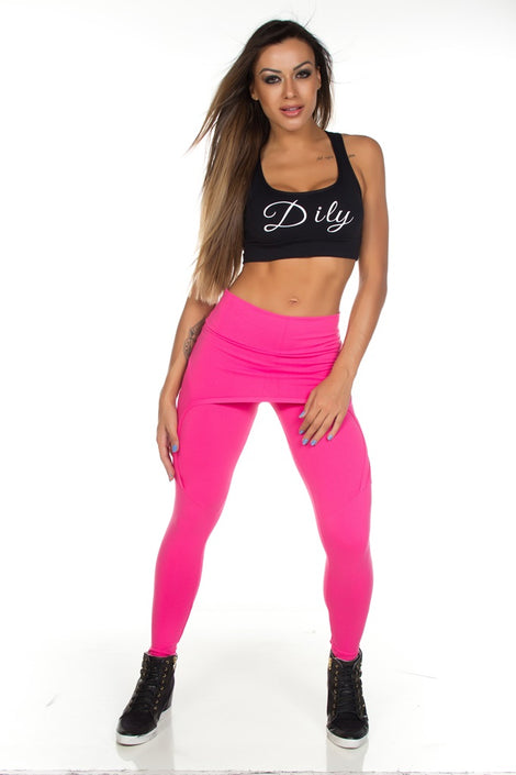 Calça com cós duplo alto, elástico na cintura, costura rebatida e sem