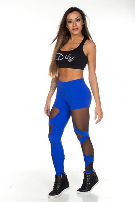 Calça Legging Fitness Lateral Cruzada Com Tule 3095