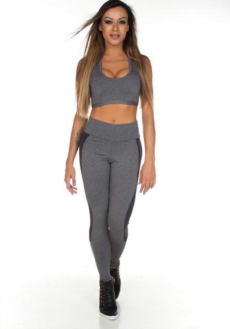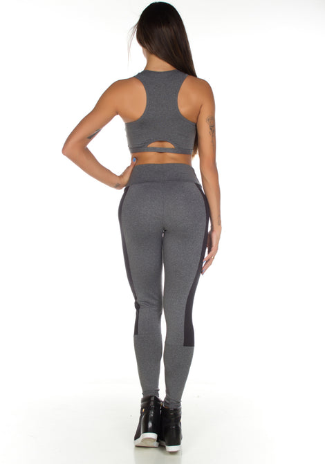 Calça Legging Fitness Mescla Com Lateral Em Cirrê | 514