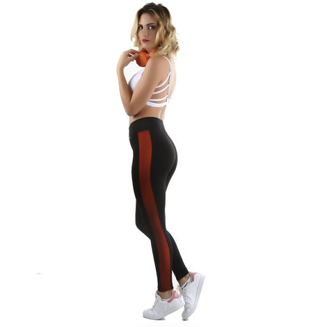 -Calça de ginástica tipo legging preta com laterais de telinha com cor tipo flúor (Amarelo, branca, laranja, pink ou verde) confeccionada em poliéster (sem transparência) modelo de cós médio duplo com elástico no interior proporcionando maior segurança e firmeza (não fica caindo).