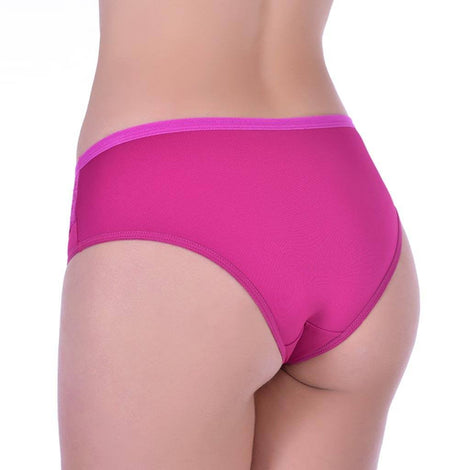 Calcinha conforto confeccionada em Romantic, tecido leve e confortável, laterais largas para maior segurança. Possui forro em algodão e aplicações em renda sobrepostas nas laterais.