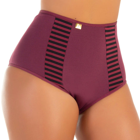 -Calcinha estilo calçola alta com aproximadamente 17cm de lateral, toda confeccionada em microfibra com detalhe "retro".