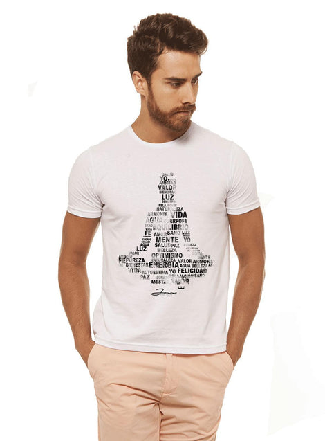 -Camiseta Branca Estampada Masculina Joss - Buda Energia , caimento reto e solto.