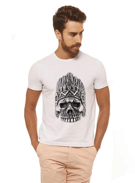 -Camiseta Branca Estampada Masculina Joss - Caveira Coroa , caimento reto e solto.