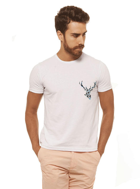 -Camiseta Branca Estampada Masculina Joss - F Alce , caimento reto e solto.