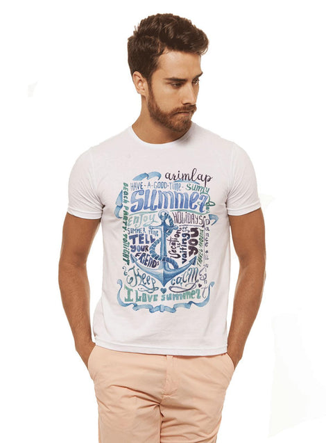 -Camiseta Branca Estampada Masculina Joss - I Love Shutter , caimento reto e solto.