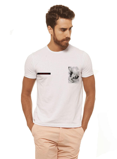 -Camiseta Branca Estampada Masculina Joss - F Capoeira 2 , caimento reto e solto.