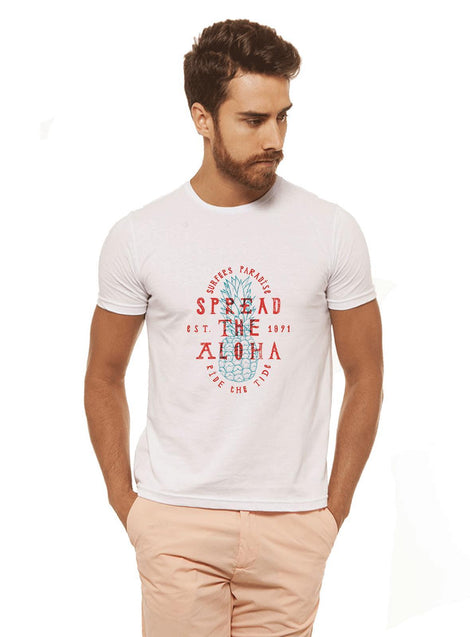 -Camiseta Branca Estampada Masculina Joss - Spread , caimento reto e solto.