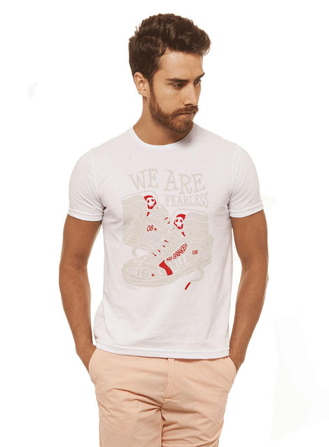 -Camiseta Branca Estampada Masculina Joss - We Are (Estampa Branca) , caimento reto e solto.