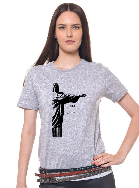 Camiseta Cinza Mescla Estampada Feminina Joss - Cristo