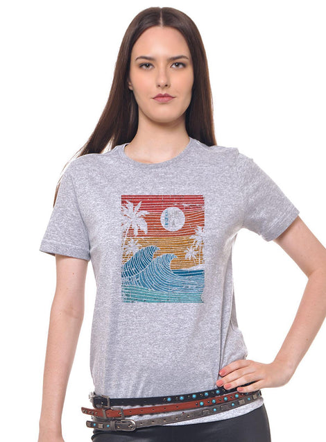 Camiseta Cinza Mescla Estampada Feminina Joss - Wave