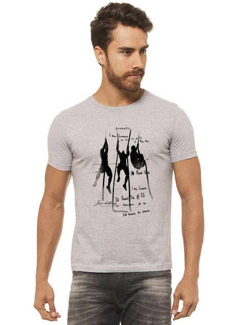 -Camiseta Cinza Mescla Estampada Masculina Joss - Cross, caimento reto e solto.