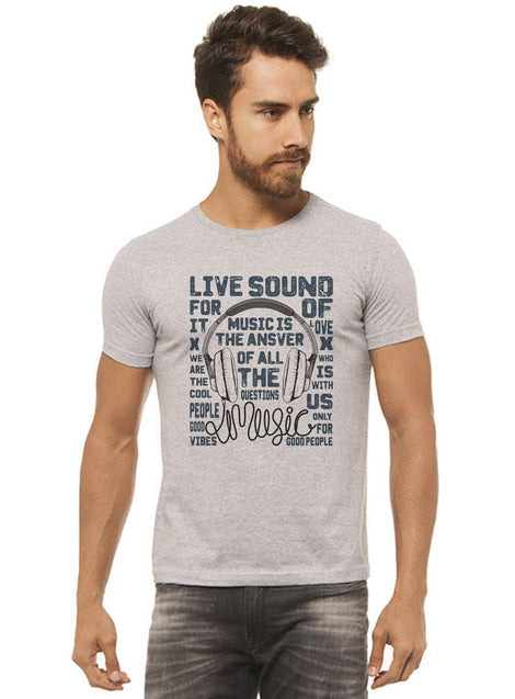 -Camiseta Cinza Mescla Estampada Masculina Joss - Live Sound, caimento reto e solto.