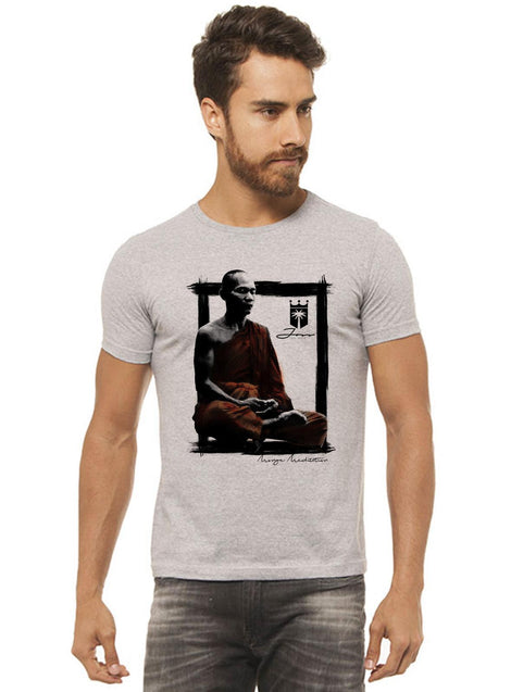 -Camiseta Cinza Mescla Estampada Masculina Joss - Meditação, caimento reto e solto.