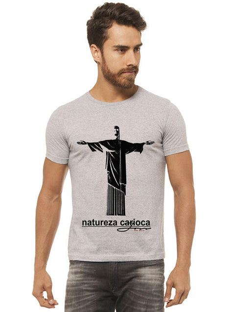 Camiseta Natureza Carioca Cinza Mescla Estampada