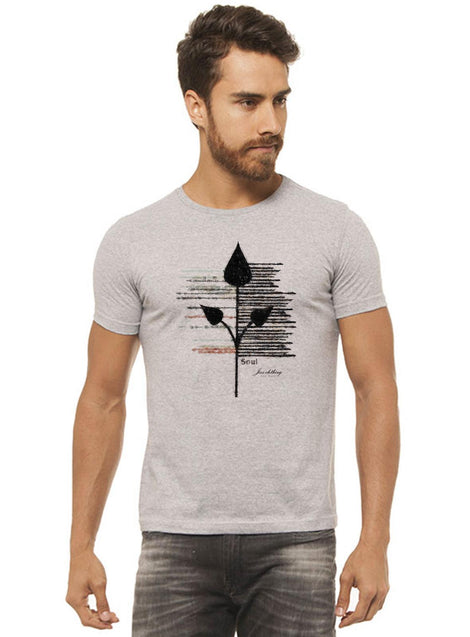 -Camiseta Cinza Mescla Estampada Masculina Joss - Soul, caimento reto e solto.