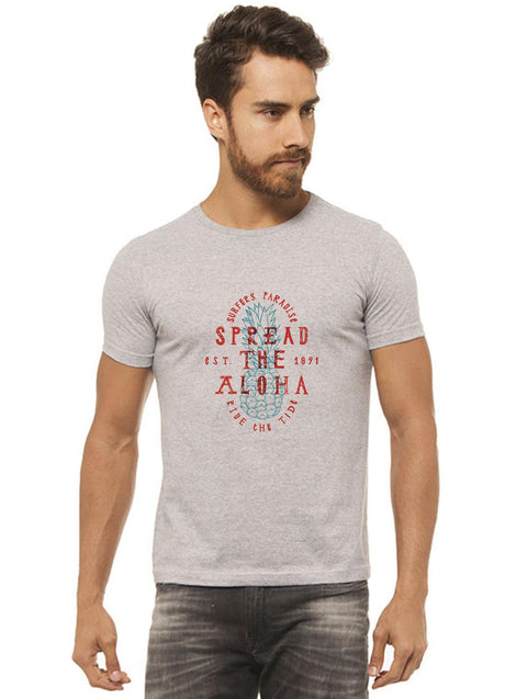 -Camiseta Cinza Mescla Estampada Masculina Joss - Spread, caimento reto e solto.