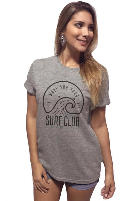 -T-Shirt Arimlap Mescla Surf Club Cinza,Caimento Reto e Gola Careca.