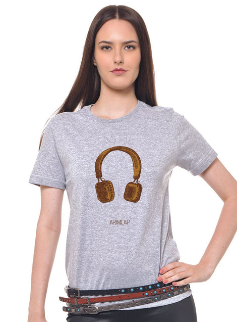 Camiseta Joss Cinza Mescla Estampada Fone