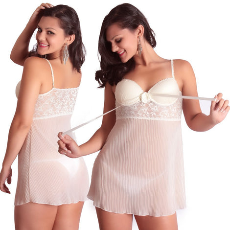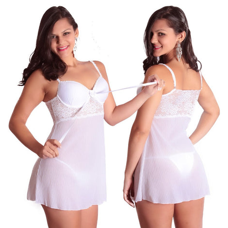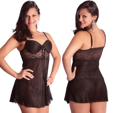 Linda camisola para noites especiais, sedutora com leve transparência delicada no toque com caimento perfeito, no seu acabamento delicado e sedutor e mais ainda confeccionada em seu tecido Crepe-Chantily com brilho, realça e valoriza ainda mais esta peça