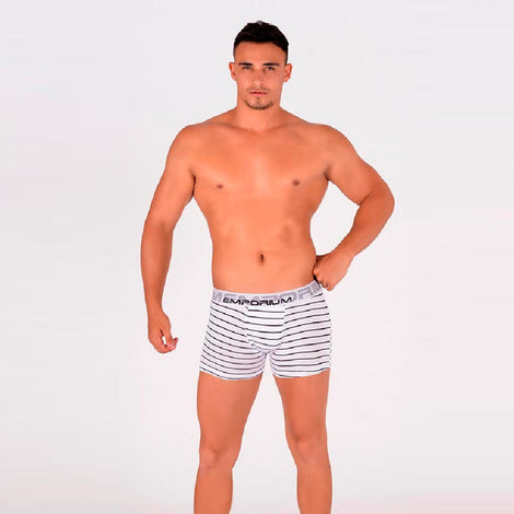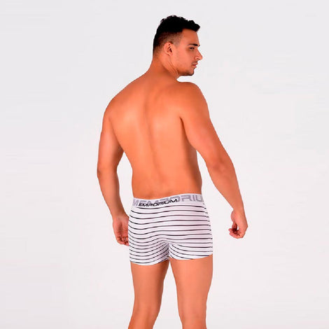 Cueca boxer confeccionada em Viscolycra Estampada em listras, tecido confortável e macio, com forro em algodão na parte frontal, possui elástico exposto largo na cintura, que proporciona mais conforto e segurança.