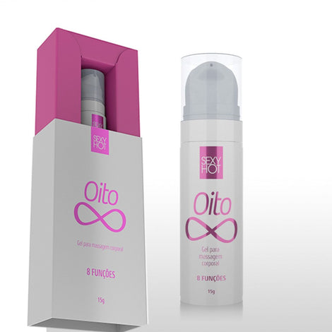 Oito é um gel para massagem formulado com ativos que provocam oito funções diferentes, aumentando ainda mais o prazer a dois.