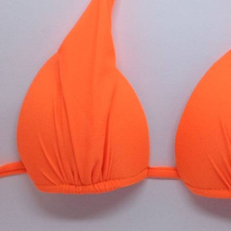 -Sutiã/Top confeccionado em Lycra ® Praia, modelo cor lisa (Laranja ou Preto) e com bojo Liso triangulo (sem enchimento), de amarrar. Modelo com alças largas, super confortavel e drapeado na cobertura.