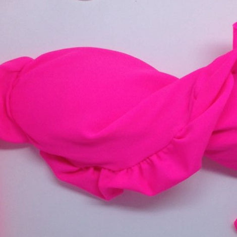 -Sutiã/Top confeccionado em Lycra ® Praia, modelo cor lisa (Preto ou Rosa) e com bojo Liso (sem enchimento), de amarrar. Bojo coberto com tecido sobressalente e deve ser torcido no centro o que o torna ideal para mulheres com seios pequenos, além disso possui detalhe em babadinho.