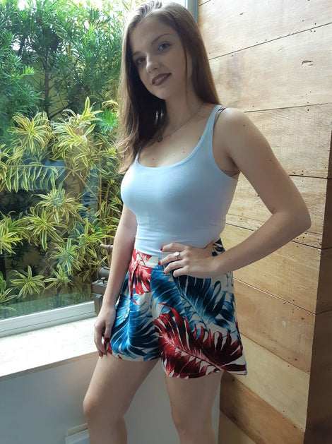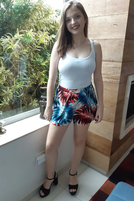 -Lindo shorts em viscose, com estampas de folhas, perfeito para usar no verão, proporcionando conforto feito para mulheres de atitude.