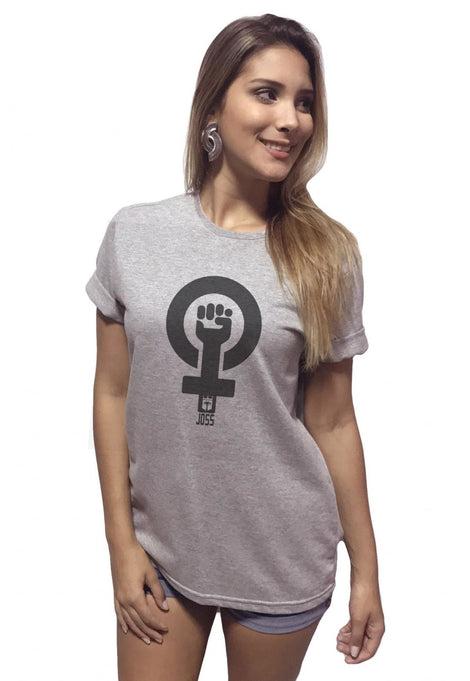 -T-Shirt Feminina Estampa Simbolo Feminino,com Caimento Reto e Gola Careca.