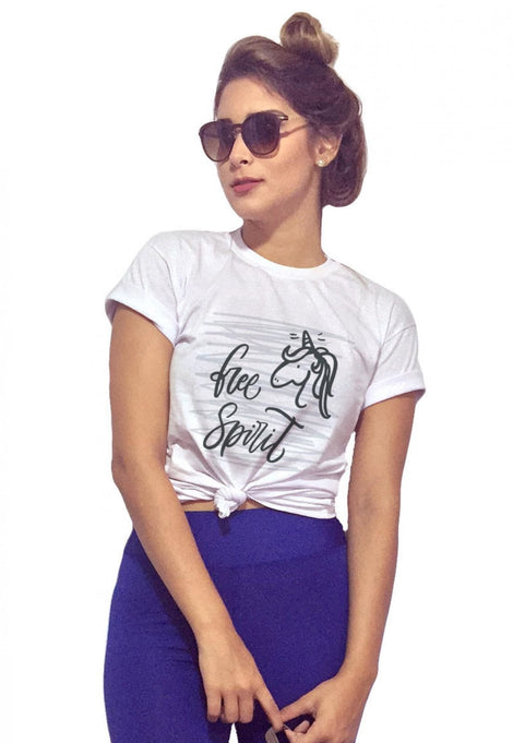 -T-Shirt Feminina Free Spirit com Caimento Reto e Gola Careca.