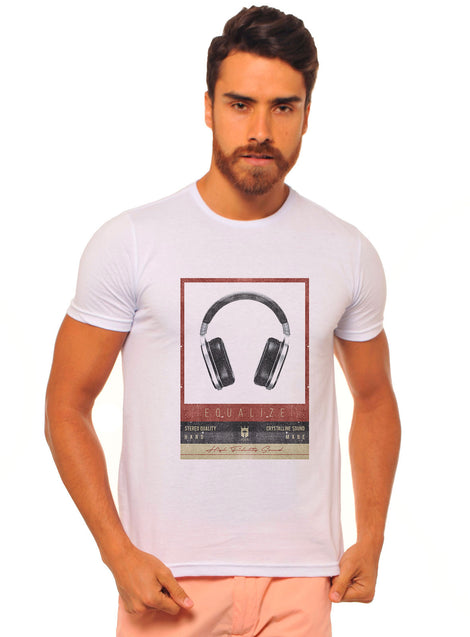 -Camiseta Estampa Equalize, com Caimento Reto e Gola Careca.