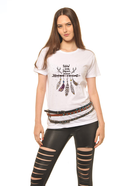 -T-Shirt Feminina Follow your Dream com Caimento Reto e Gola Careca.
