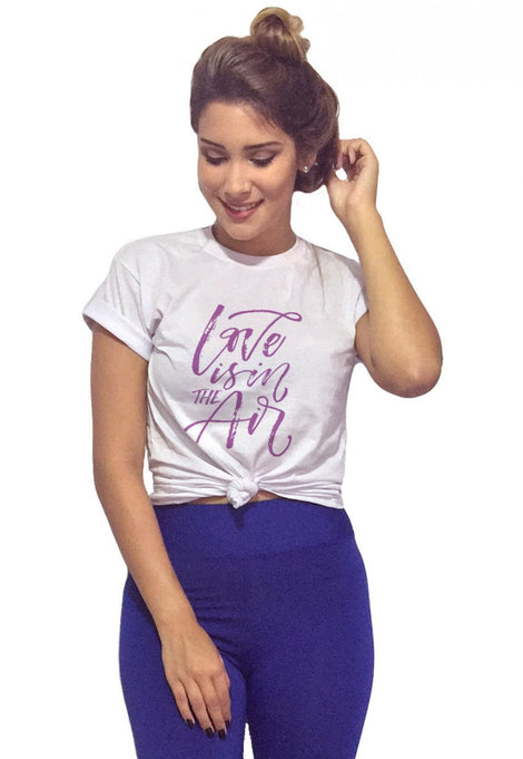 -T-Shirt Feminina Love is in The Air com Caimento Reto e Gola Careca.