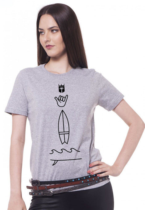 -T-Shirt Feminina Estampa Hang Loose,com Caimento Reto e Gola Careca.