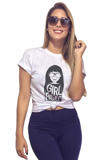 -T-Shirt Feminina Power Glasses com Caimento Reto e Gola Careca.