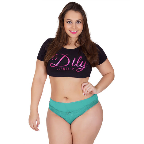Calcinha Plus Size Amélia em Microfibra e Renda - Dily Modas