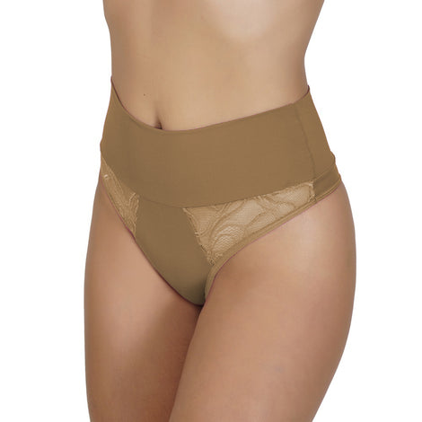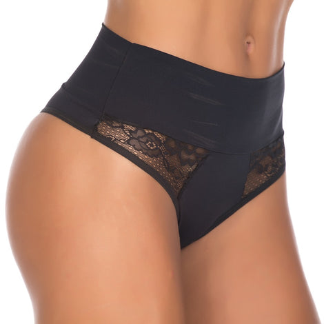 Tanga plus size confeccionada em microfibra de poliamida com renda na frente.